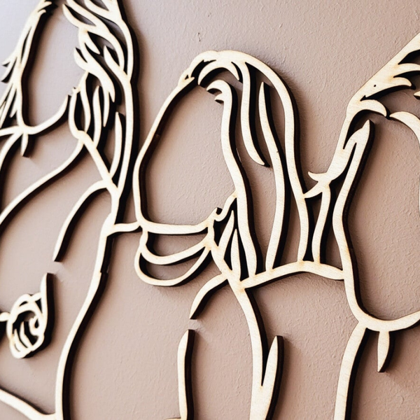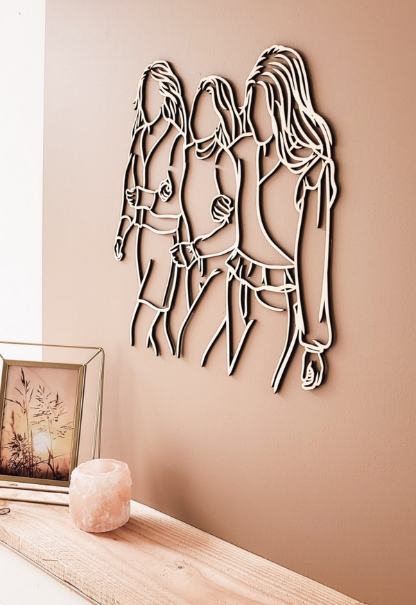 Een persoonlijk en unieke wanddecoratie van een je gezin, je vrienden of een dierbaar moment. Het ontwerp van jouw lijnmoment wordt eerst met de hand getekend en vervolgens gelaserd uit hout.